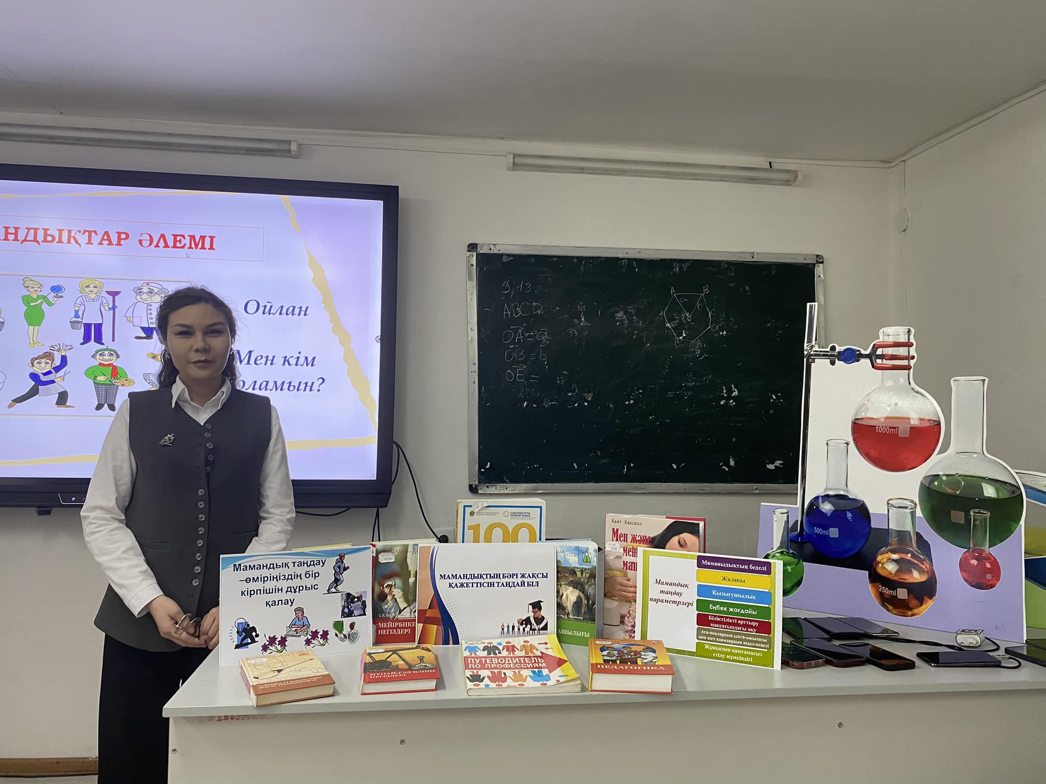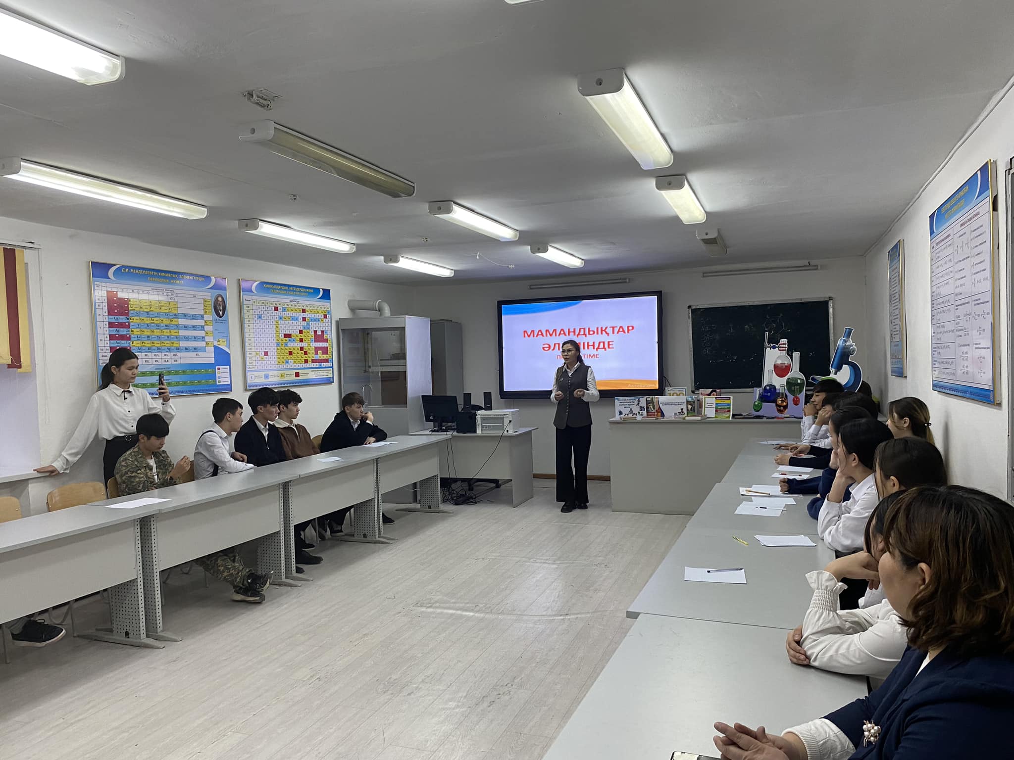 Аудандық орталық кітапханасының ұйымдастыруымен «Навигатор» кәсіптік бағдар беру жобасы аясында № 2 облыстық мамандандырылған мектеп лицей интернатында, жоғары сынып оқушыларының қатысуымен « Мамандықтар әлемінде» атты профи time өткізілді. Шараның мақсаты: оқырманға әртүрлі мамандықтар туралы ақпарат беру арқылы әр мамандықтың талаптары мен мүмкіндіктерін түсіндіру, жас оқырмандарға көпшілік мамандықтар туралы түсінікпен қаруландыру; кәсіптік қызығуы мен бейімділігін, қабілеттілігін қалыптастыру және дамыту мақсатында жас өскелеңнің дара ерекшеліктерін зерттеу; мектеп бітірушілерге мамандық таңдауға көмектесу; белгілі мамандықтың түрін меңгеруге бейімдеу. Шара барысында оқырмандар «Мамандықты тап», «Мен таңдаған мамандық» атты тренинг пен психологиялық тест тапсырмаларға белсене қатысып, түрлі жаттығулар арқылы таным қабілеттерін дамытуға, өз пікірін еркін айтуға, жүйелі ойлауға, тапқырлықтарын шыңдауға жұмыстанды. Бүгінгі күні мектеп оқушыларына кәсіби бағдар беру жұмыстары қарқынды жүргізілуде. Шара аясында мектептің бейіндік орынбасары Жиенбаева Мөлдір және сынып тәрбиешісі Балманова Ғазиза жұмыс нарығындағы сұранысқа ие мамандықтар және оның сан алуан түрлері мен таңдауда қателеспеу жайлы мол ақпарат берді. Сонымен қатар оқырман назарына «Мамандықтың бәрі жақсы, қажеттісін таңдай біл» атты кітап көрмесі ұсынылды. Шара соңында мектеп бітіруші оқырмандарға болашақтағы қалаған мамандығына қол жеткізсін деген ниетпен «Болашаққа билет» атты тілек жазылған билет таратылды. Құрметті жас өскелең, мамандықты дұрыс таңдауың болашағыңды дұрыс ойлауың. Мамандық таңдауда қаталеспейік!